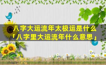 太极运是指八字大运流年中的某个阶段,属于八字 🦋 命理学中的 🌷 一个概念 🦉 。