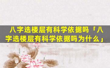 八字选 🐋 楼 🌹 层有科学依据吗 🐱 ?