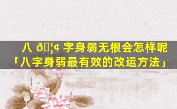 需要注意的是,八,字身弱改运是一个长期的过程需要持之以恒的努 🐼 力和调整以。上,方。法仅供参考具体实施需结合个人 🍀 命格具体情况