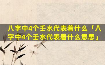 八字 🦁 中四个 🐟 壬水通常代表 🐈 着: