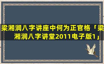 梁湘润八字讲 🐳 堂2011电1子 🌴 版 🐺