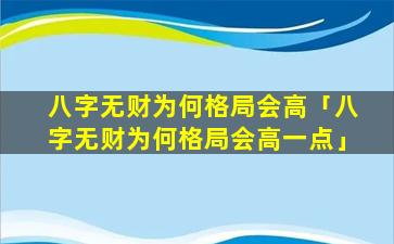 八字中 🦁 无 🐋 财并不是格局高的体现 🐘 。