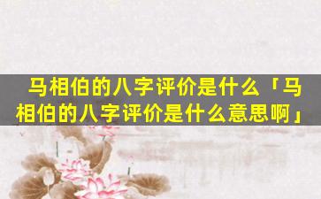 整体 🦅 来 🌸 看,马相伯的八字具有以下特点 🐝 :