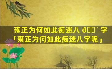 雍正对 🦅 八字痴迷的表现 🌸 :