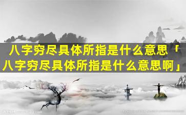 八字穷尽具 🐕 体所指的意思是指一个人的八字命盘中,财运、官运、婚、姻,子嗣等各方面都比较弱难以获得好的发展。