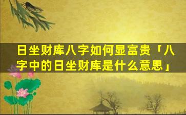 具体含义财 🐱 运亨通:日坐财库的人通常财运不错,擅,长 💮 ,理财攒钱有道容易积累 🌳 财富。