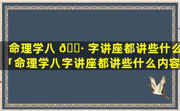 命理学八字讲 🐠 座通常 🌷 会涵盖以下主题: