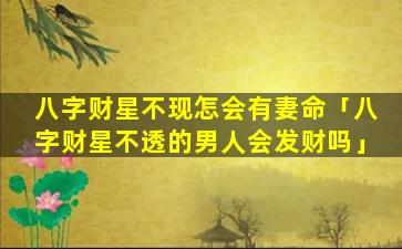 因此,八,字中财星不现并不意味着没有妻命。需。要 🦋 结合八字中其他因素综合判断