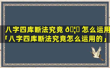 八字四库 🕊 断法运 🐈 用