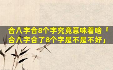 因此,根,據傳統命理學的說法合八字合了8個字 🐧 並非不吉利。相,反,這通常表示男女雙方八字 🍀 契合度較高在緣分、性。格和命運方面有較好的相融性