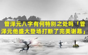 “盛大登场 🐯 ”暗示着管泽元突然打断或破坏了完美的 🌷 结束,而“完”美,谢幕 🐺 则表示着之前的活动或表演原本结束得很好但被管泽元的中断所破坏。