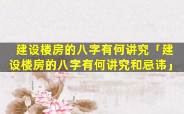 建 🦈 设楼房的八字讲究