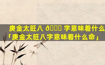 金 🌻 太旺的 🦊 性格特 🐶 征
