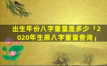 出生年份的八字重量没有一个确切的科学定义八字重 🐒 量的。概念通常与中国传统的八字算命术有关,而八字。算命术本身没有科学依据