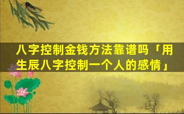 用生辰八字控制一个人的感情是不可能的生辰八字是一。种中国古代的占卜方法,它基于出生日期和时间来预测一个人的命运、性。格。和运气没有科学证据支持生辰八字可以控制人 🐳 的情感