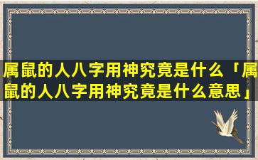 按五行相生 🦟 相克的 🌾 理论,属鼠的人五 🐋 行属水。因,此八字用神一般为: