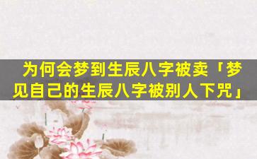 梦到 🐠 生辰八字被卖,可能表 🌲 示以下几种心理或潜 🌴 意识状态: