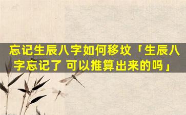 如果忘记了 💮 生辰八字,移坟可以 🐬 采用以下 🐱 方法: