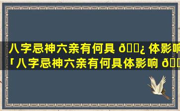 注意:忌神对六亲的影响需结合命 🐼 局整体来看,并非所有 🐅 忌 🦆 神都会带来负面影响。