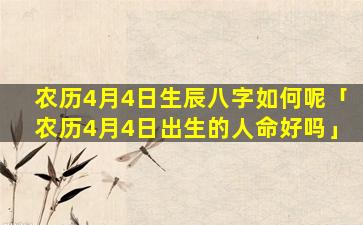 农历 🕷 四月四日出生的人命好不好不,能,一概而论需要结合具体出 🌾 生年月时辰来判断。