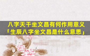文昌星掌管智慧和学习,因,此,八字天干坐 🌺 文昌的人往往聪慧过人学习能力强思维敏捷。
