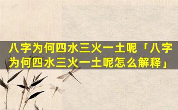 八字命理中的“四水三火一土的”说法并不是绝对的八字是。由出生年月 🐝 日時的干支組成的,每一。柱由,天“干”地。支組成八字中五行元素的數量和組合會根據每個人的出生時間而有所不同並非總是四 🍁 水三火一土的格局