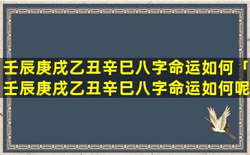 壬辰庚戌 🌵 乙 🍁 丑辛巳八字命运分析