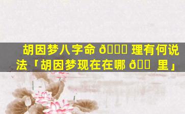 近几年,胡,因梦淡出娱乐圈 🦟 专注于心灵探索和写作。她,出 🕸 。版了多部著作分享个人成长和灵性觉醒的感悟