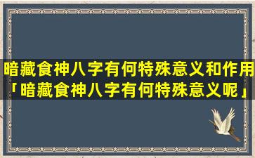 暗藏食神在八 🐘 字 🐝 中具有以下 🪴 特殊意义: