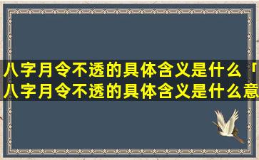 “八字月 🕷 令不透”的含义 🐕 :