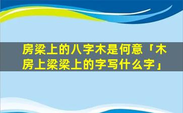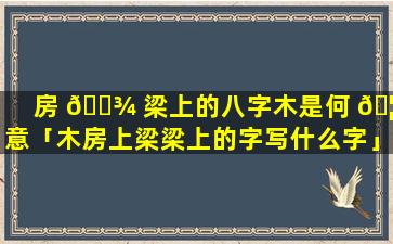 “房梁上的八字木”指的是在 ☘ 传统中式建筑中,于屋顶内承重结构梁(架体系中)使,用“的特殊构 🐝 件其形状类似于中文数字八八字形 🦟 ”(故),得此名。