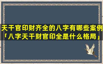 八字财官印全部透天干,说,明这三种五行旺盛 🐡 在命主的人生 🦋 中起着重要作用。