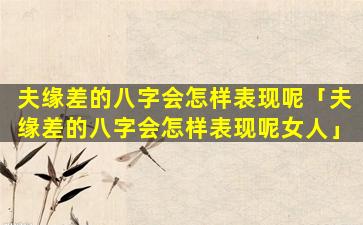 女人 🪴 “缘差”八字的影响表 🕷 现 ☘ :