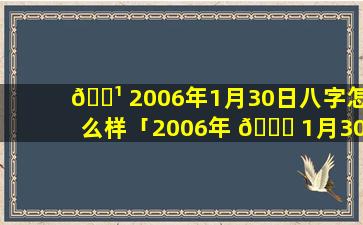 总体来说,2006年1月30日,出,生,的,八字是一个偏印 🐅 格日主偏弱 🐳 但印比生扶有力学业事业运势都不 🐋 错。需,要,注。意的是官星被克制事业发展可能会受到阻碍