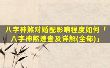 八字神煞在命理学中 🐛 有一定影响 🐞 ,也,包,括对婚 🌷 配的影响但影响程度因人而异不能一概而论。