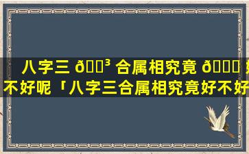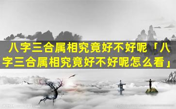 因此,八,字,三合属相 🐦 究 🕸 竟好不好需要具体分析命局 🐯 不能一概而论。