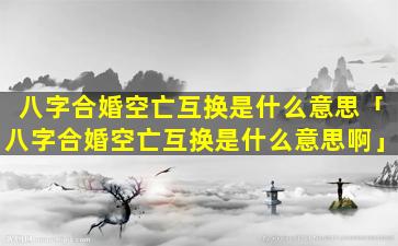 在 🐴 八字合婚中 🌹 ,“空亡”是,指“生”肖相冲而互换是指 🐬 两人八字中相冲的生肖互为对方的配偶星。