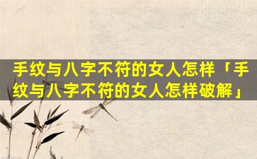 破解手纹与八字不符的方法因人而异,需 🐯 要根据个人的 💮 具体情况进行选择。切,忌,盲,目。迷信应该理性对待结合个人的努力和生活态度才能真正改善运势