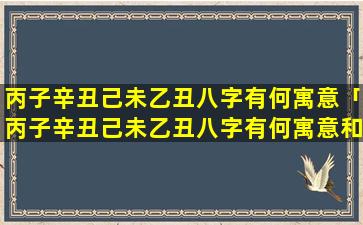 丙子辛丑己未乙丑八 🐦 字的寓意如下: