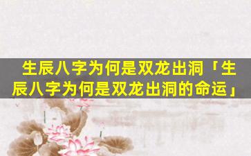 “双 🐟 龙出 💐 洞”并非生辰八字的术语。
