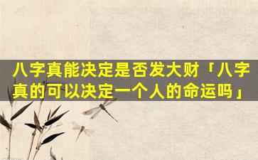 对于八字是否能 🐯 决定一个人是否发大财,不同的人有不同的看法。