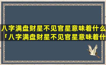 八字中满盘财星不见官 🐅 星通常意味着以下含义: