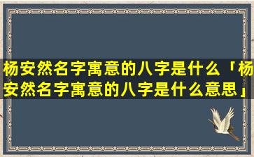 综合来看,“杨安然”这,个名字与八字 🐅 寓意外在表现基本一致寓意着命主是一个热情开朗、稳、重、踏实但魄 🦆 力稍弱情感细腻之人。