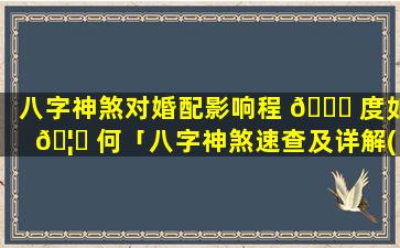 神煞相生:男女八字 🦁 中的吉神(如天乙贵人、紫微星)互相生 🐟 助,婚姻运势 🐎 较好。