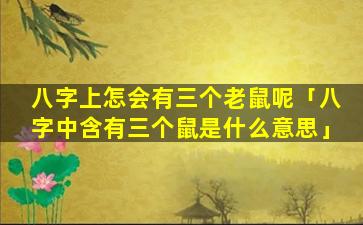 子水旺盛鼠 🍁 在地支中对应子水,因此三个鼠意 🦢 味着 🐅 子水旺盛。