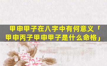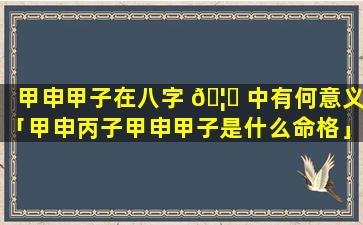 甲申甲子在 🐼 八字 🦈 中的特殊意义