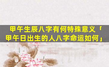 甲 🐱 午年生辰八字的特殊意 💐 义