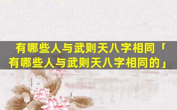 没有明确的历史记载或研究表明有任何人与武则天的八字完全相同八字。是根据出生日期、时间和地点推算出的专属于个人的命理信息,因,此。即使出生时 🦆 间相近八字也不一定会完全一致