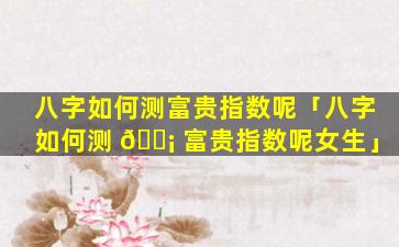 判断女性富贵指 🍁 数的 🐒 八字要 🐯 素