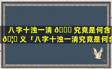 “八 🐠 字十浊一清”指的是八字 🕊 命理中的一种格局,具体解释如下: